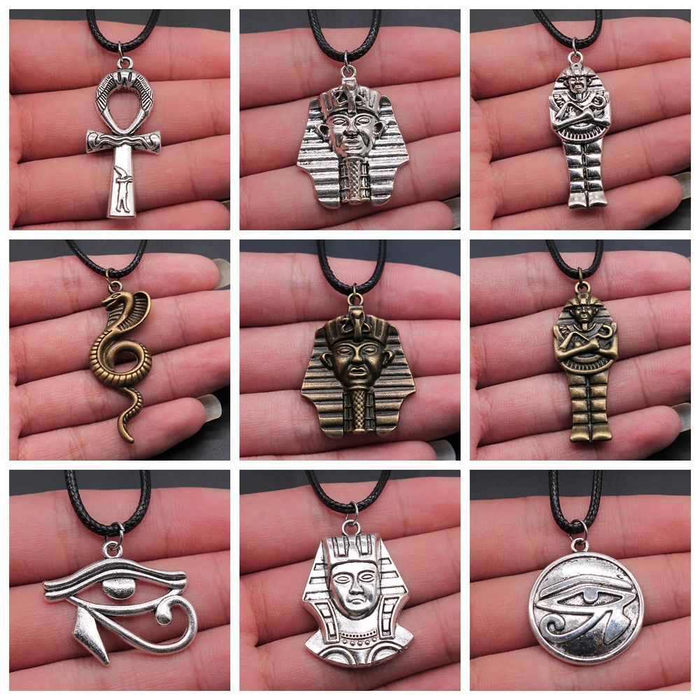 Черные кожаные Чиан ожерелье древнего египетского фараона в глазом АНК крест подвеска амулет Подарочные ожерелья украшения