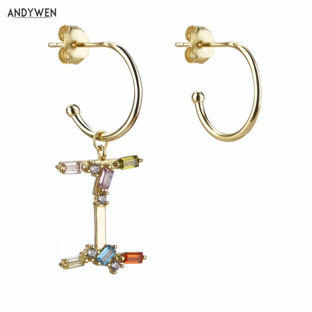 ANDYWEN 100% Стерлинговое Серебро 925 пробы Золотой инициал I A M свисающая Подвеска буква новый дизайн 2020 модные радужные женские ювелирные изделия