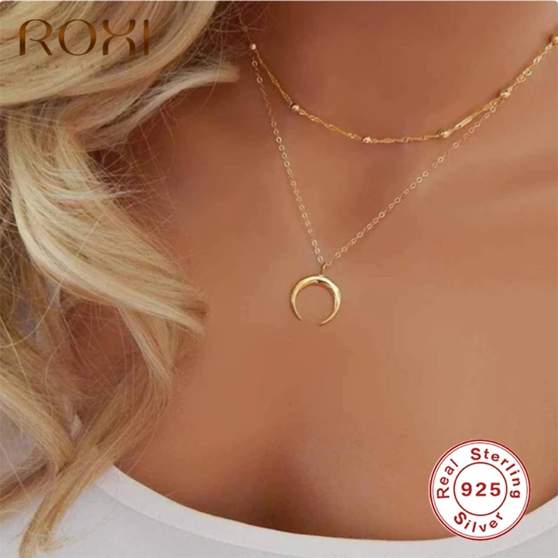 ROXI нарядная многослойная ожерелья с кулонами в виде Луны для женщин и девочек маленькие бусины ювелирных изделий цепи 925 стерлингового сере...