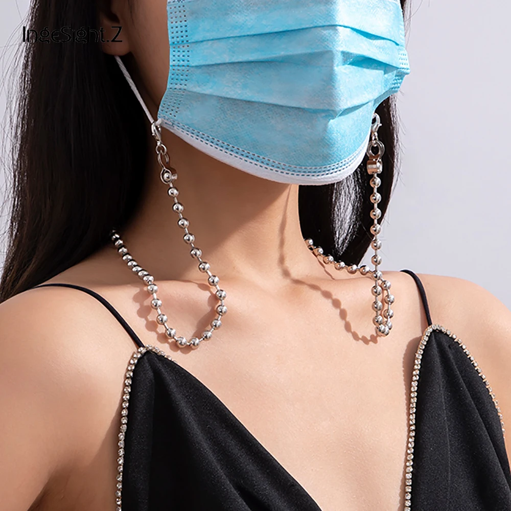 Простое минималистичное ожерелье IngeSight.Z из бисера серебряного цвета, цепочка с маской, женские длинные ожерелья, украшения для шеи, подарки на новый год