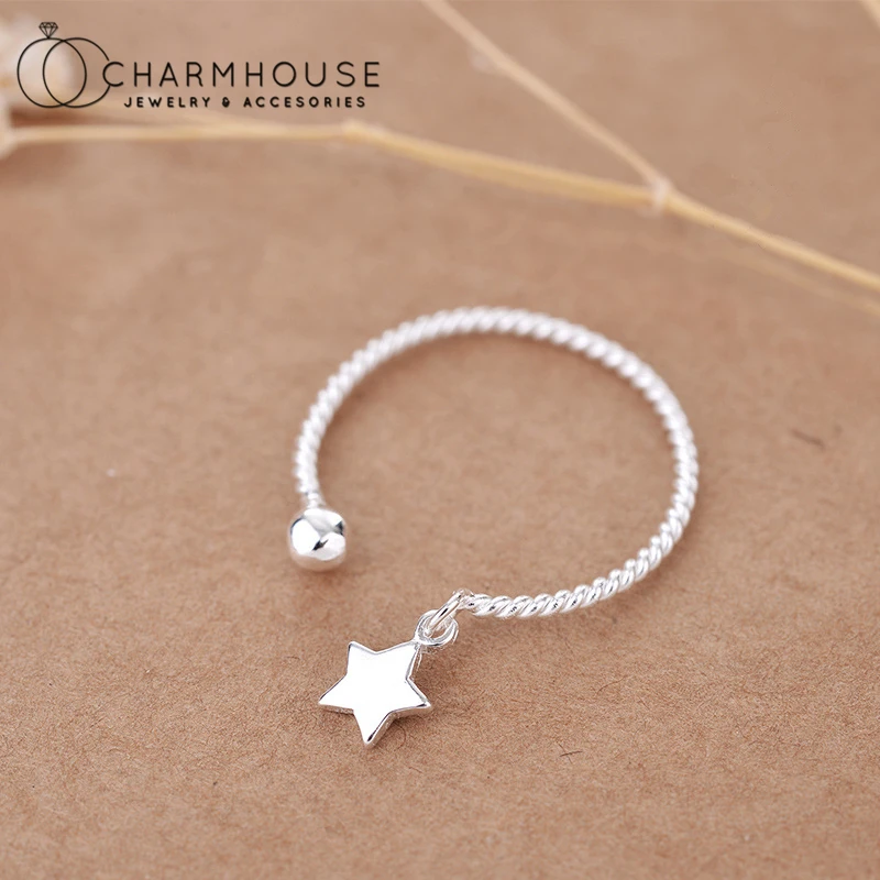 Женские кольца из серебра 925 пробы, открытое регулируемое кольцо со звездами и витой звездой, корейские ювелирные изделия, аксессуары, лучший подарок, 2021