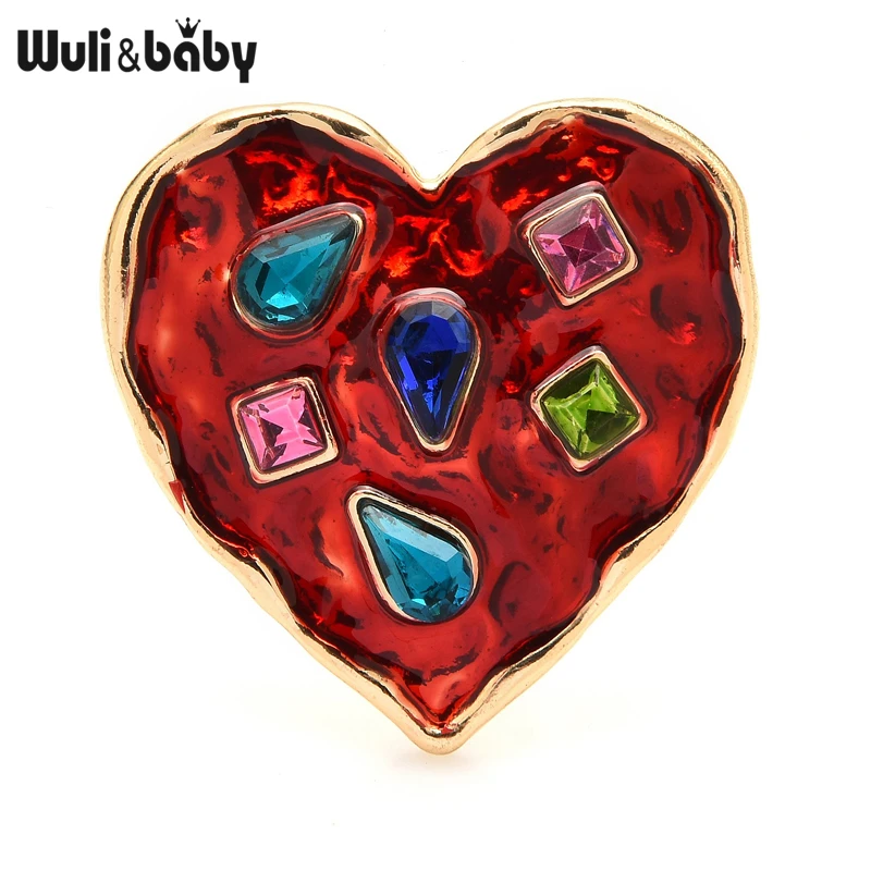 От T Wuli baby Броши с сердечком для женщин унисекс Стразы 2-х цветный Красный значок с сердцем, брошь с застежкой, подарки