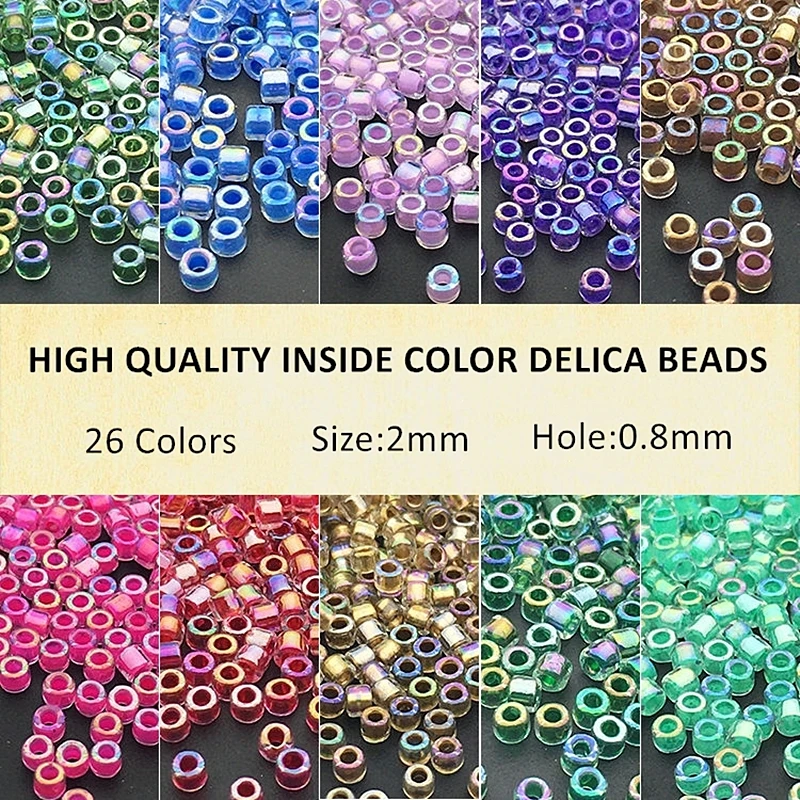 2 мм бусины Miyuki Delica внутри окрашенная Цвета Форма стекло с бисером для девушек, ювелирные изделия, серьги для изготовления ювелирных изделий...