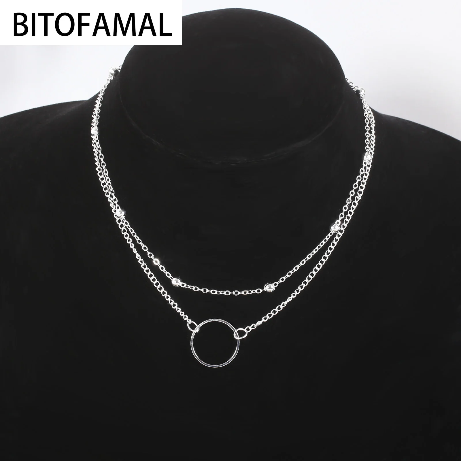 Модное Двухслойное ожерелье с бусинами и цепочкой в виде полого круга для женщин, простые геометрические женские трендовые ожерелья-чокеры