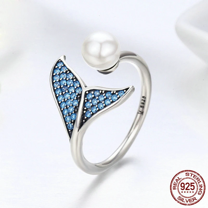 Новый Регулируемый хвост дельфина кольца для Для женщин стерлингового серебра ювелирные изделия Русалка кольцо