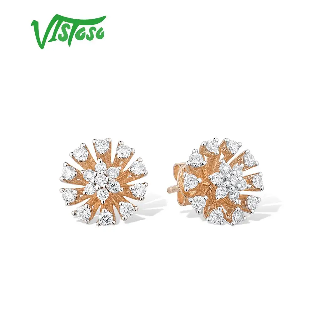 Женские Золотые сережки в виде цветка VISTOSO, розовое золото 14 к 585 пробы, со сверкающими бриллиантами, изящные модные ювелирные украшения из д...