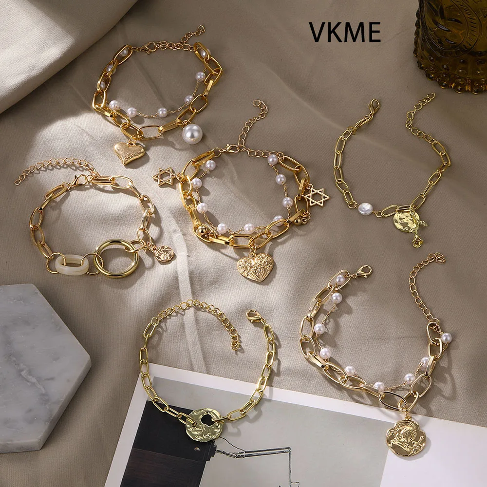 Женский перламутровый браслет VKME, винтажные перламутровые браслеты с цветами в Корейском стиле, 2020