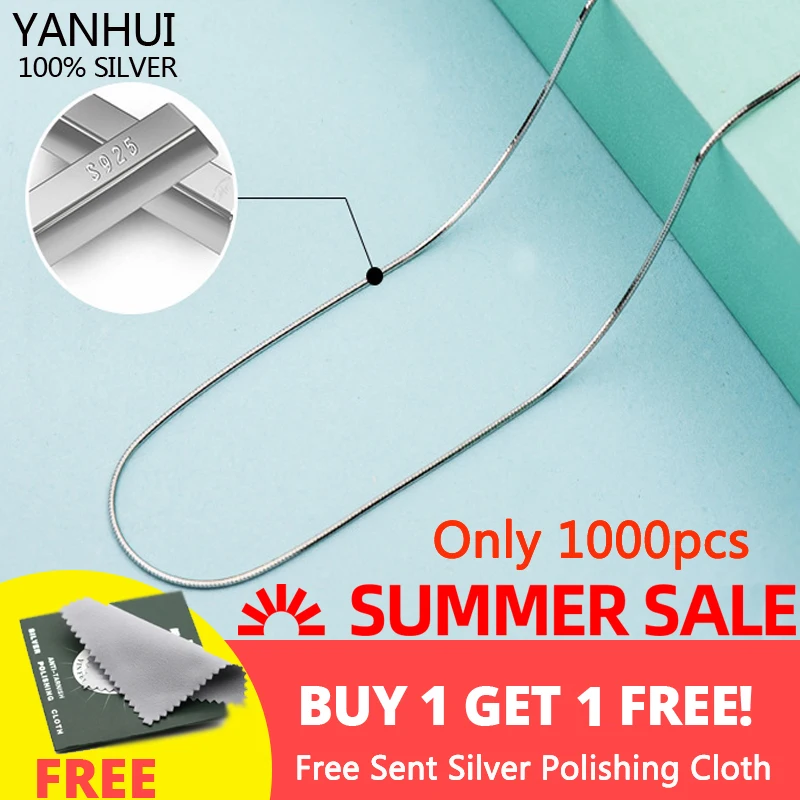 Летняя распродажа, 100% подлинное цельное серебро 925 пробы, змеиное ожерелье, женское тонкое 1 мм гладкое/мягкое базовое ожерелье из серебра 925 пробы SN001