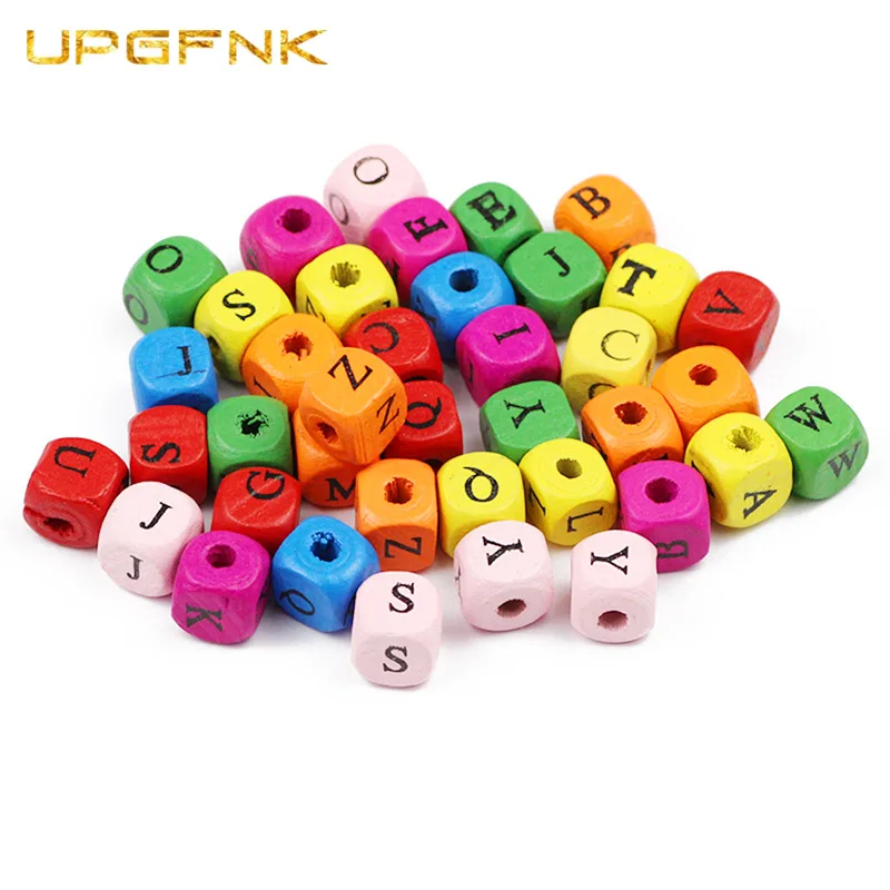 UPGFNK квадратные деревянные бусины 50 шт 10 мм Смешанные Буквы Алфавита разделители свободные бусины ювелирные изделия для изготовления деревянных браслетов своими руками