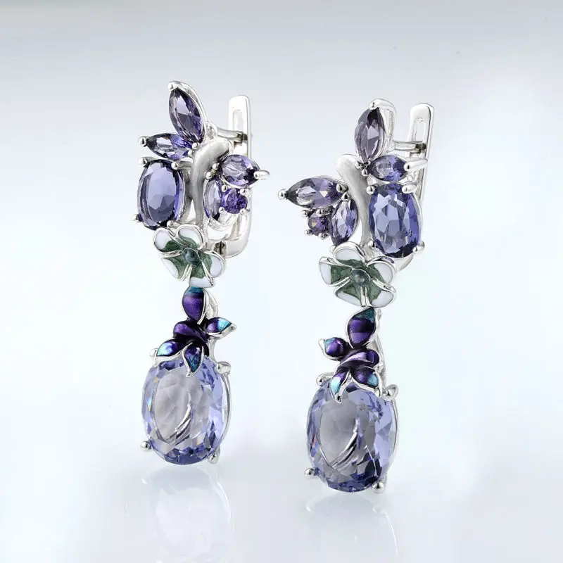 Новые модные женские Элегантные зеленые эмалированные серебряные Висячие Богемские серьги-подвески Стильные цветочные Свадебные обручальные серьги, Ювелирное Украшение