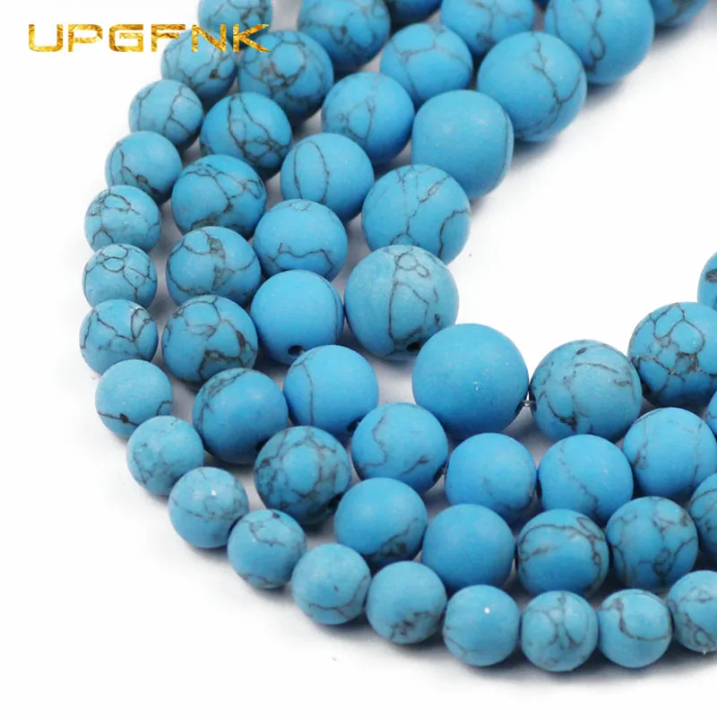 UPGFNK бусины из натурального камня матовый голубой бирюзовый круглые свободные бусины для самостоятельного изготовления ювелирных изделий браслет оптовая продажа 6/8/10/12 мм