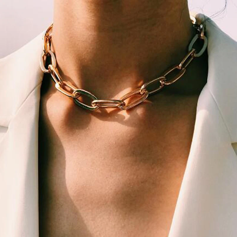 Панк Майами кубинское колье ожерелье воротник массивное хип-хоп большое массивное алюминиевое Золото Цвет толстая цепочка ожерелье женское ювелирное изделие