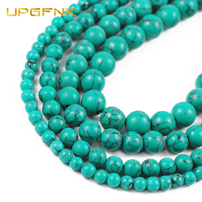 UPGFNK натуральный камень зеленая бирюза круглые свободные бусины для изготовления ювелирных изделий DIY браслет ожерелье 15 ''Strand 6/8/10/12 мм