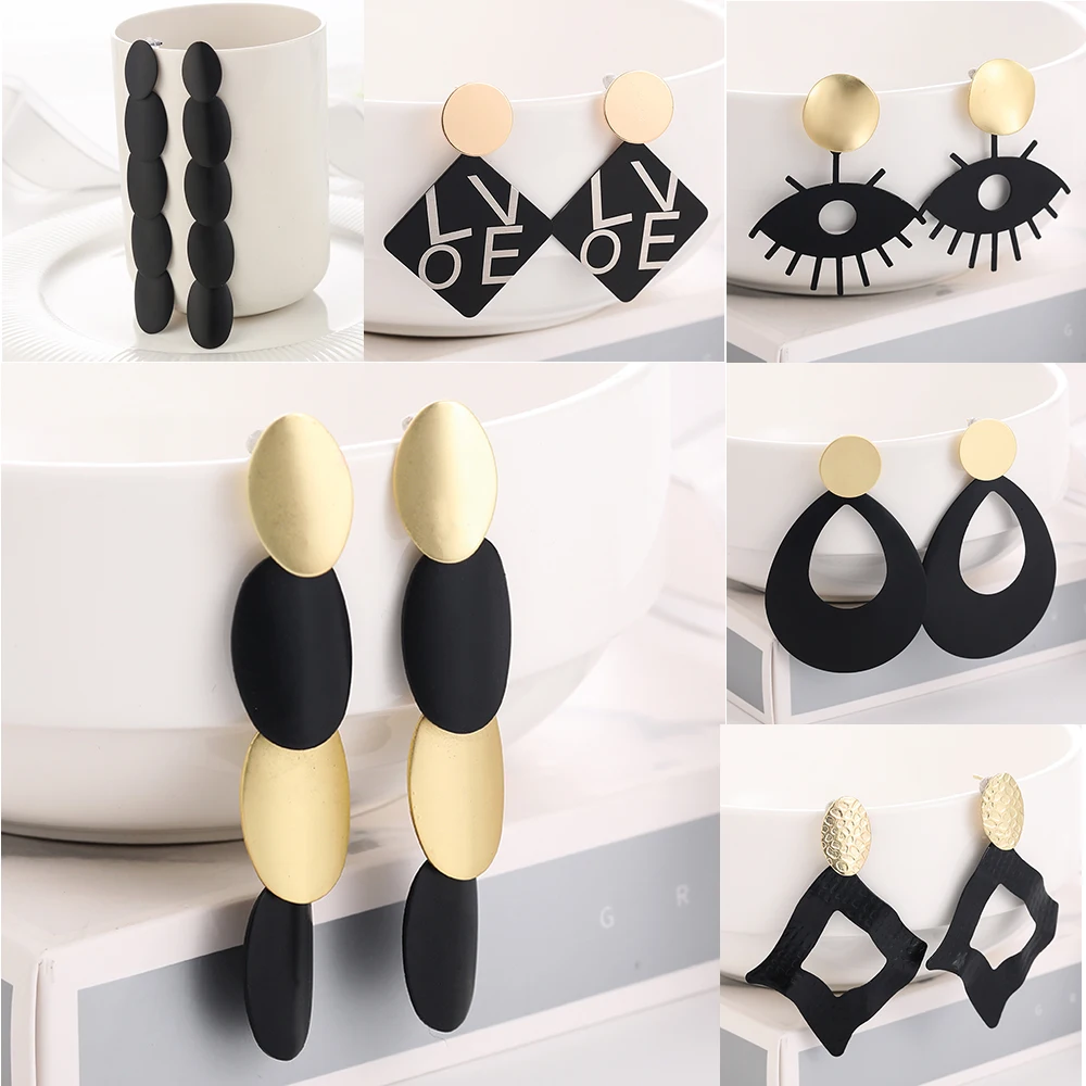 WYBU Летний стиль золотые Висячие серьги для женщин геометрические черные длинные висячие серьги перо богемные крест бижутерные серьги