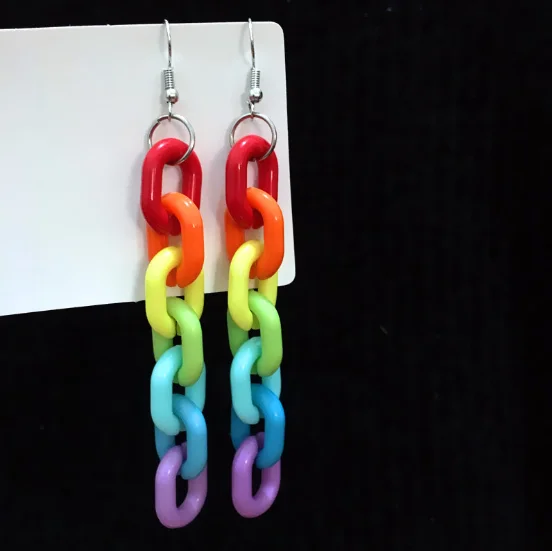 Яркие акриловые серьги с длинной цепочкой, яркие радужные геометрические крутые серьги для женщин, вечерние ювелирные изделия