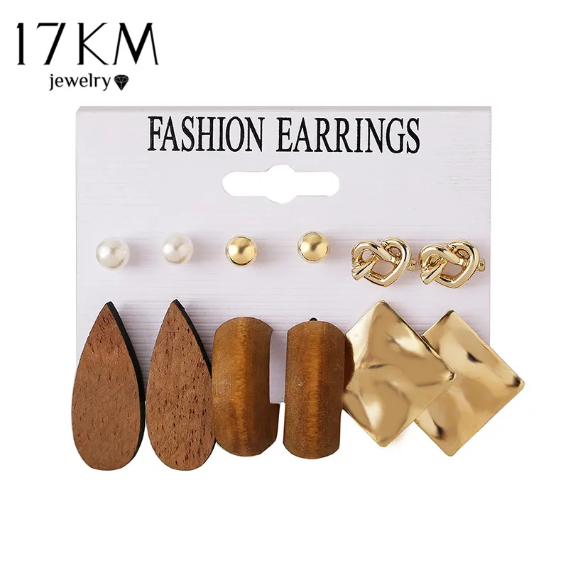 17 км 2020, винтажный Деревянный Комплект сережек для женщин, геометрические круглые золотые серьги с металлическим узлом, женские модные ювелирные изделия, Новинка