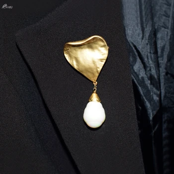 AOMU 2019 Корея Мода Металлические в форме сердца Броши барокко имитация жемчуга Женская Брошь вечерние костюмы аксессуары ювелирные изделия