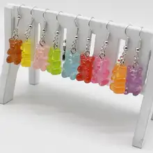 Милый с золотым порошком мультяшный медведь Висячие Серьги Смола красочные конфеты цвет леди девушка милый медведь серьги Веселые вечерни...