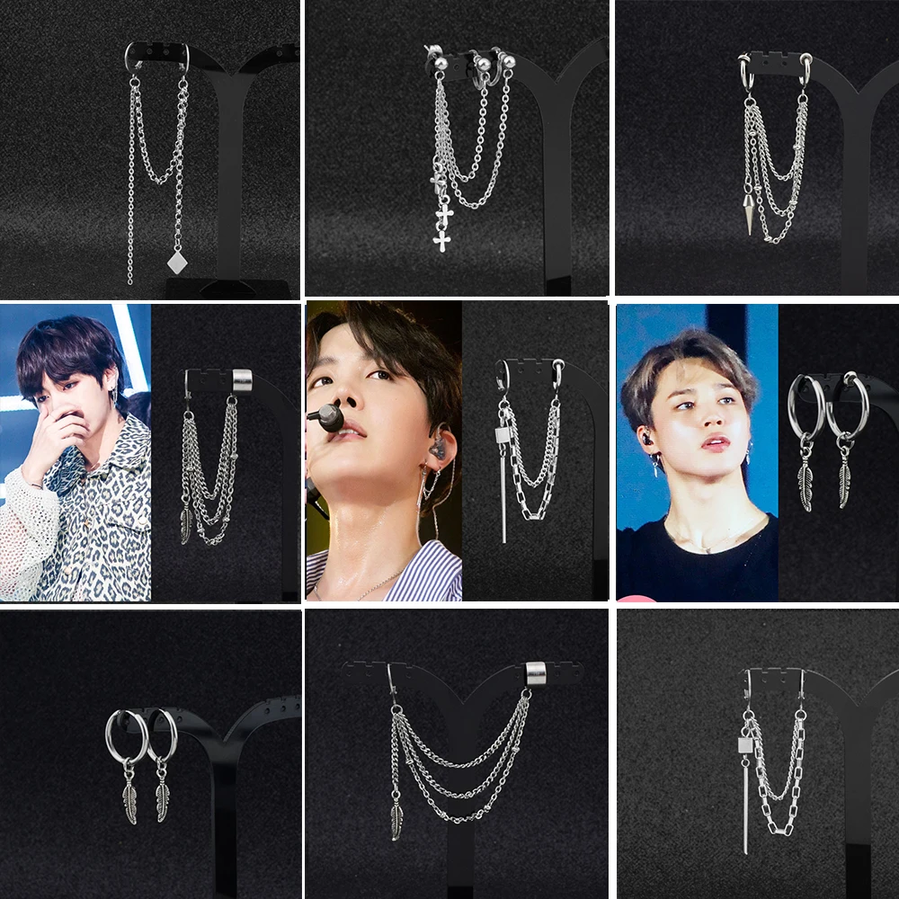 Jisensp корейский модный стиль серьги в стиле панк для мужчин Асимметричные популярные украшения Bangtan мальчиков V DNA серебряные серьги дружески...