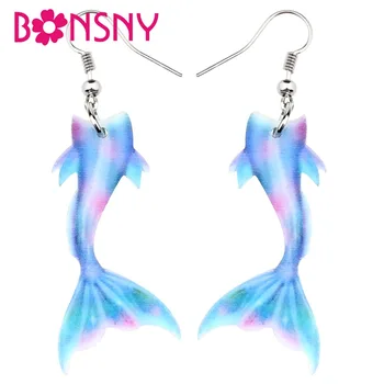 Bonsny акриловые фея Русалка рыбий хвост серьги-подвески в форме капли большой длинный мультфильм весело украшения для женщин обувь девочек д...