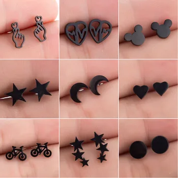 SMJEL нержавеющая сталь серьги Микки для женщин мужчин хип хоп Black Star Серьга-гвоздик в форме месяца модные украшения Best подарок для друга девуш...
