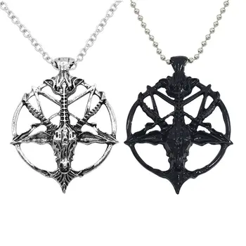 Мода Винтаж для женщин мужчин пентаграмма Пан Бог череп головы козы кулон цепи цепочки и ожерелья ювелирные изделия