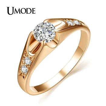 UMODE модные розовое золото цвет свадебные кольца для женщин обручение кольцо с Топ класс AAA фианит Кристалл Прекрасный женское кольцо AJR0064