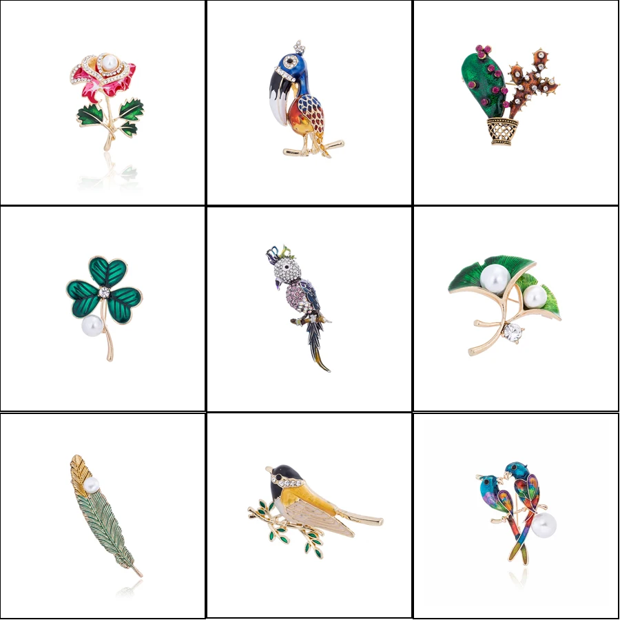 Булавки и броши для женщин, эмаль, Лист Розы, птица, шарф, воротник, лацкан, булавка, ювелирное изделие, Элегантный Большой жемчуг, стразы, мет...