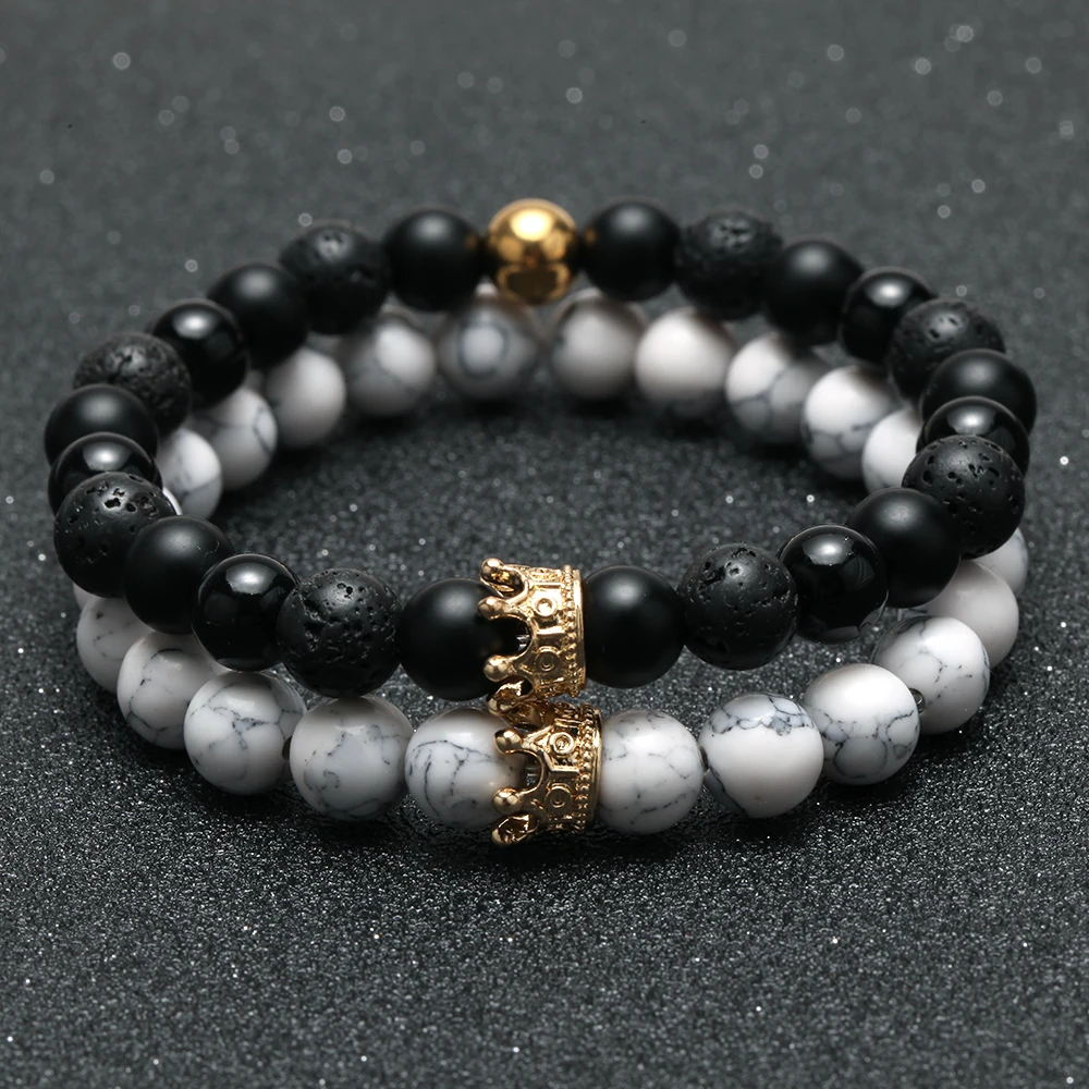 2 шт. очаровательный парный браслет для мужчин Золотая Корона женские браслеты натуральный камень браслет из бусинок Бохо пара браслет пода...
