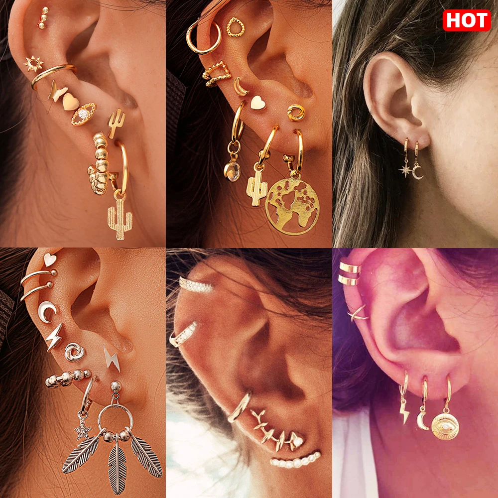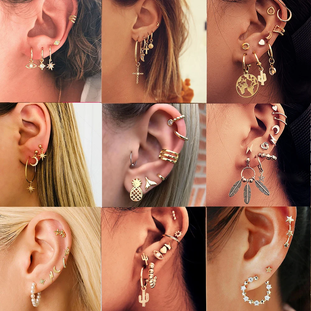 Винтажные золотые смешанные серьги-капли в виде цветка для женщин, 2019, крест, звезда, круг, серьга геометрической формы, набор, Женские Ювели...