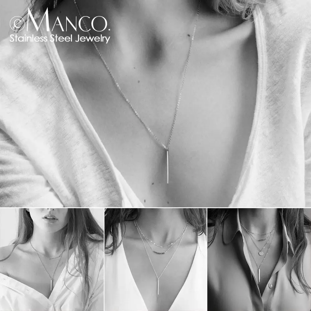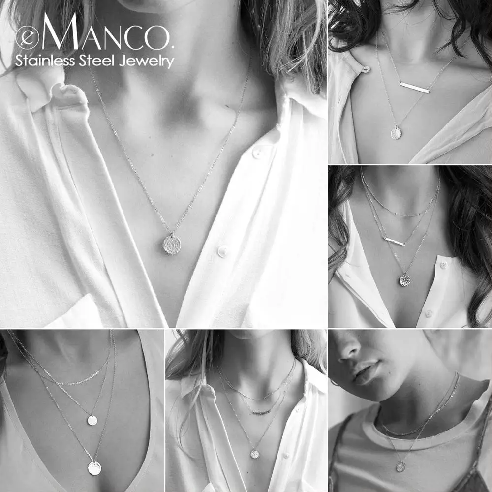 EManco 316L ожерелье из нержавеющей стали женское многослойное золотое ожерелье с цепочкой наборы хрустальных подвесок ожерелье s для женщин