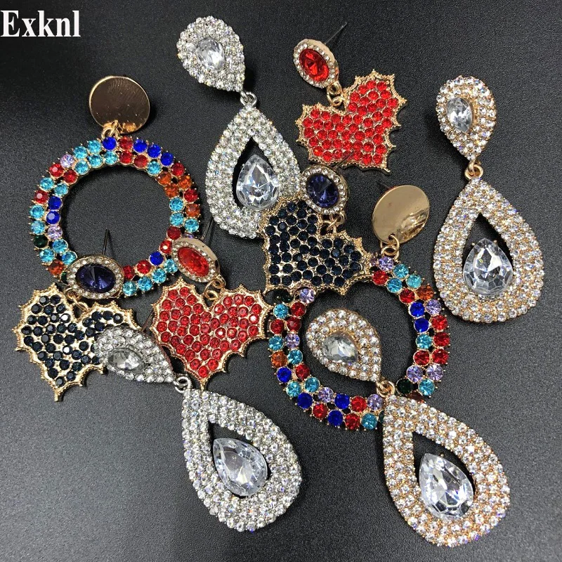 Exknl сердце Свадебные модные сережки в форме капли для женщин Серебряный цвет круглый любовь Висячие вечерние большие серьги с кристаллами ю...