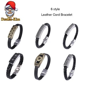 6 стильных кожаных веревочных браслетов в стиле хип-хоп, уличная культура, мужской браслет из искусственной кожи, модные трендовые мужские ю...