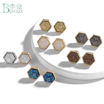 BOAKO Для женщин Симпатичные геометрический-защелка шестиугольник Овальный Золотой голубая Друза серьги-гвоздики оптом пользовательские Drusy...