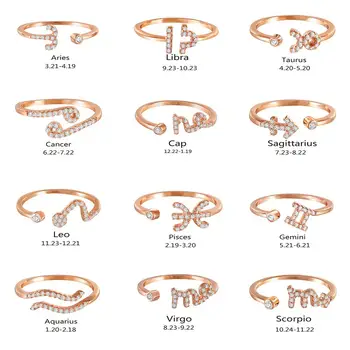 Мода 12 созвездия зодиака знак кольца для Для женщин девочек розовое золото серебро Цвет РЕГУЛИРУЕМЫЙ КУБИЧЕСКОГО ЦИРКОНИЯ аnel аnillos для ювел...