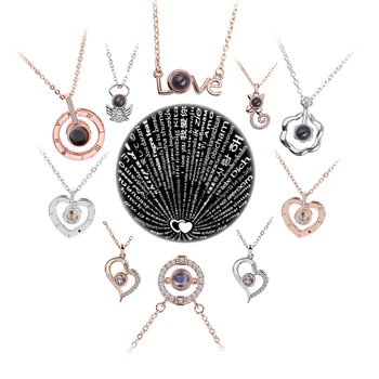 2018 Новое поступление Розовое золото и серебро 100 языков я люблю тебя проецирования кулон Цепочки и ожерелья Романтическая любовь памяти Сва...