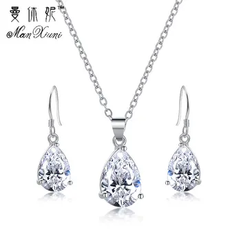 2018 серебряные Цвет комплект ювелирных кубический циркон Подвеска себе Цепочки и ожерелья Длинные Висячие серьги для Для женщин CZ свадебный...
