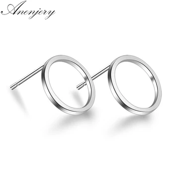 Женские геометрические серьги-пусеты Anenjery, в виде полого круга квадрата треугольника из стерлингового серебра 925 пробы, серебряное ювелирн...
