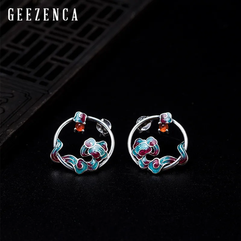 Винтажные 925 пробы серебряные серьги-гвоздики с перегородчатым облаком и агатом ручной работы, серьги с восточным элементом, хорошее ювелир...