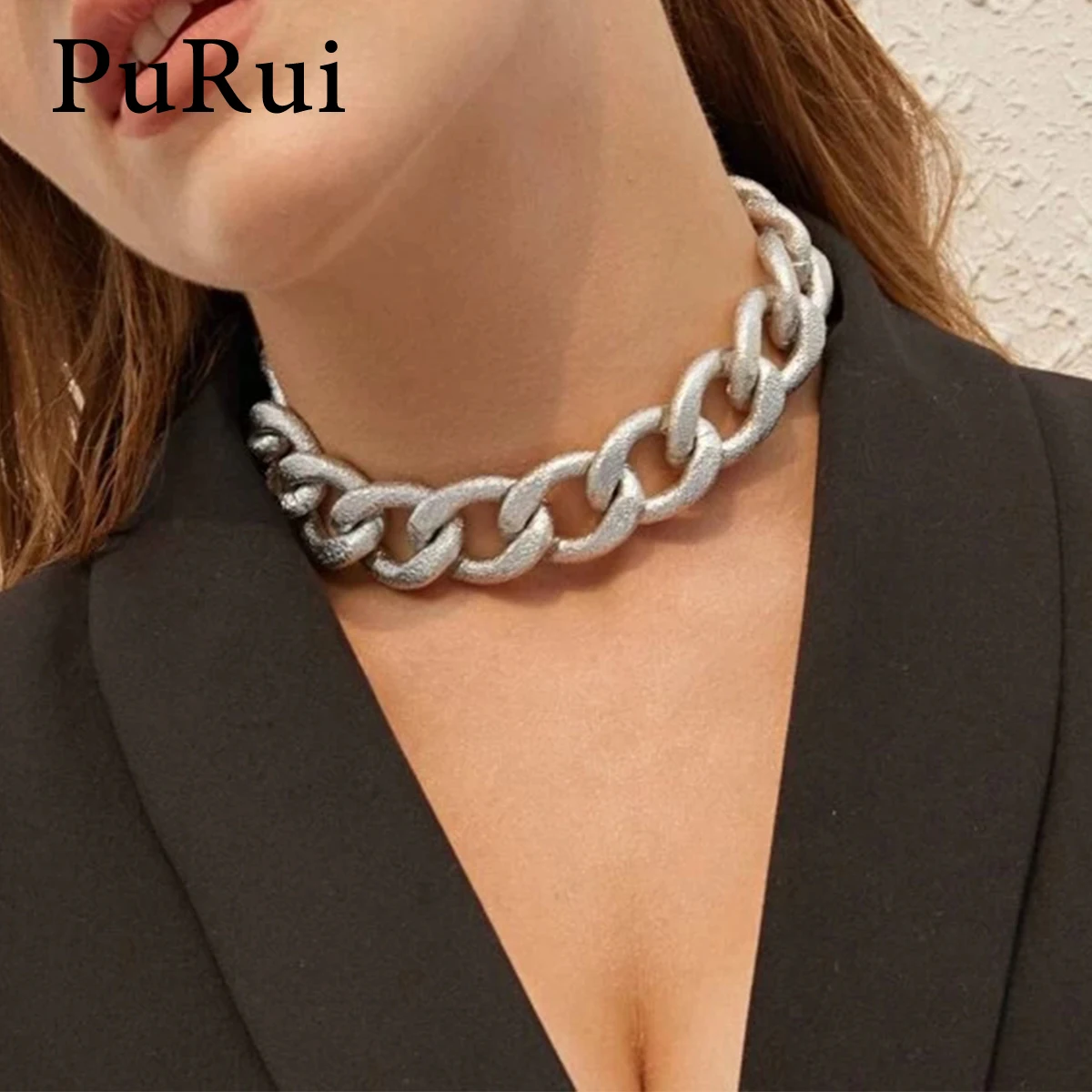 Пуруи массивное Ожерелье Серебряная с золотом цепь воротник короткие Чокеры ожерелье s панк хип хоп ювелирные изделия для женщин модное мас...