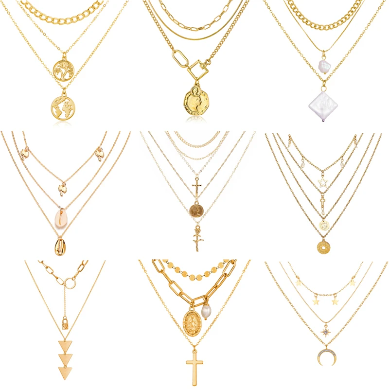 Горячая Распродажа, Золотое многослойное ожерелье на цепочке, женская новая богемная подвеска, жемчужное ожерелье с крестом, этническое же...
