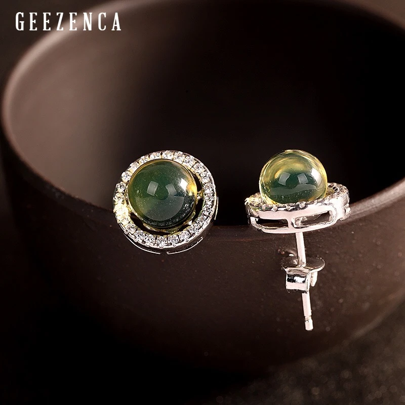 925 пробы серебряные серьги-гвоздики с драгоценным камнем, голубой Янтарь для женщин, оригинальный дизайн, трендовые серьги, хорошее ювелирн...