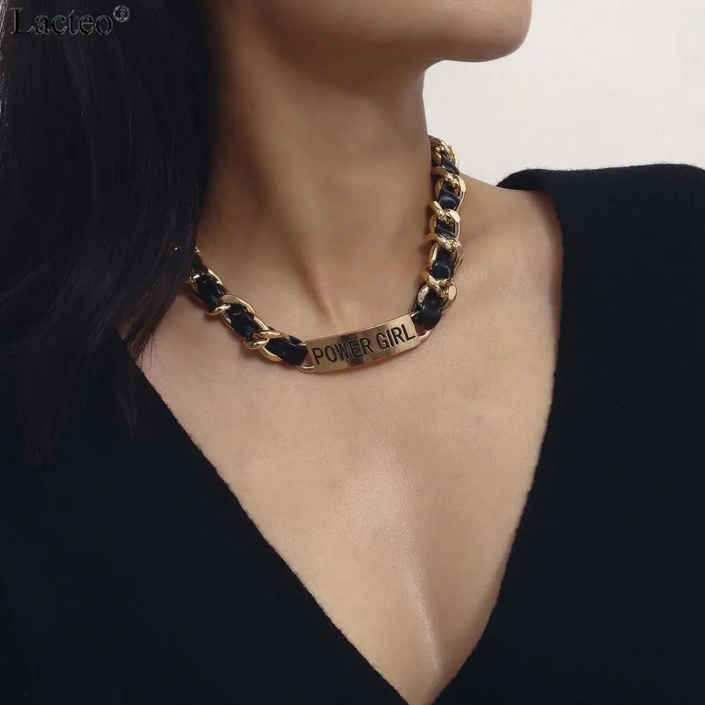 Lacteo панк толстый квадратный бренд чокер с массивной цепью ожерелье ювелирные изделия для женщин 2019 хип-хоп черное ожерелье из искусственно...