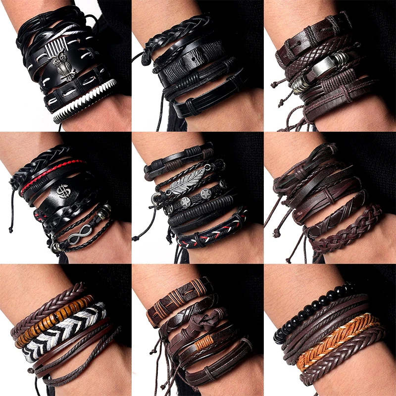Мужской Многослойный кожаный браслет с деревянными бусинами, мужские плетеные веревочные браслеты, браслеты, Pulseira Masculina, ювелирные изделия,...
