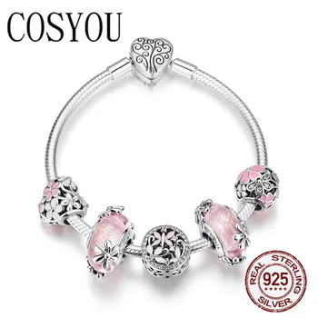 COSYOU 2019 серебро 925 пробы сад Фея розовый Европейский стеклянный бисер браслеты и браслеты из стерлингового серебра ювелирные изделия SCB821