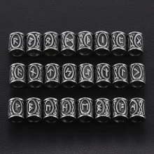 24 шт. из нержавеющей стали викинговые бусины с руной для бороды для волос большое отверстие 8 мм Elder Futhark ювелирный браслет Изготовление DIY по...