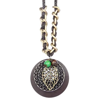 ZMZY Длинные ожерелья и кулоны объемное стильное украшение винтажные массивные кожаные ожерелья для женщин подарок деревянные украшения Цеп...