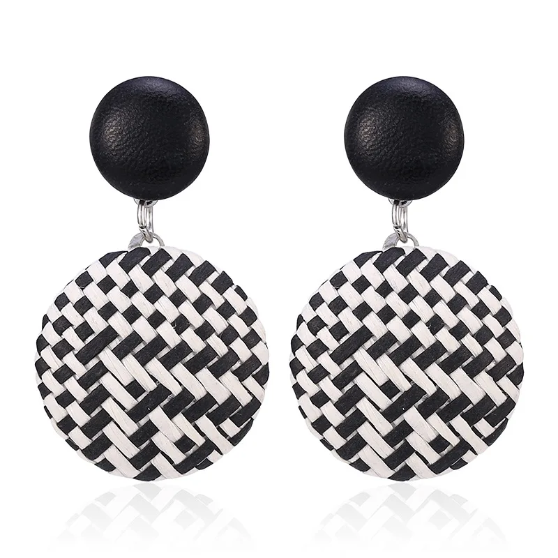 Модные травяные плетеные винтажные этнические круглые серьги богемные деревянные Ротанговые подвеска-сетка серьги женские Подарочные юве...