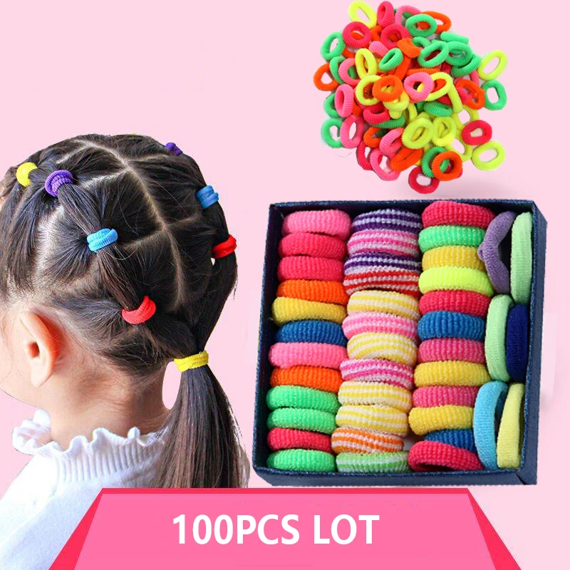 100 шт., резинки для волос для девочек, эластичная резинка, Детские резинки для хвостика, аксессуары для женщин, новое поступление