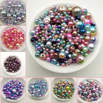 Множество вариантов, 3/4/5/6/8/10/12 мм круглые имитация Радуга Цвет Пластик ABS жемчужные бусы Сделай Сам подходят для Аксессуары для ювелирных из...